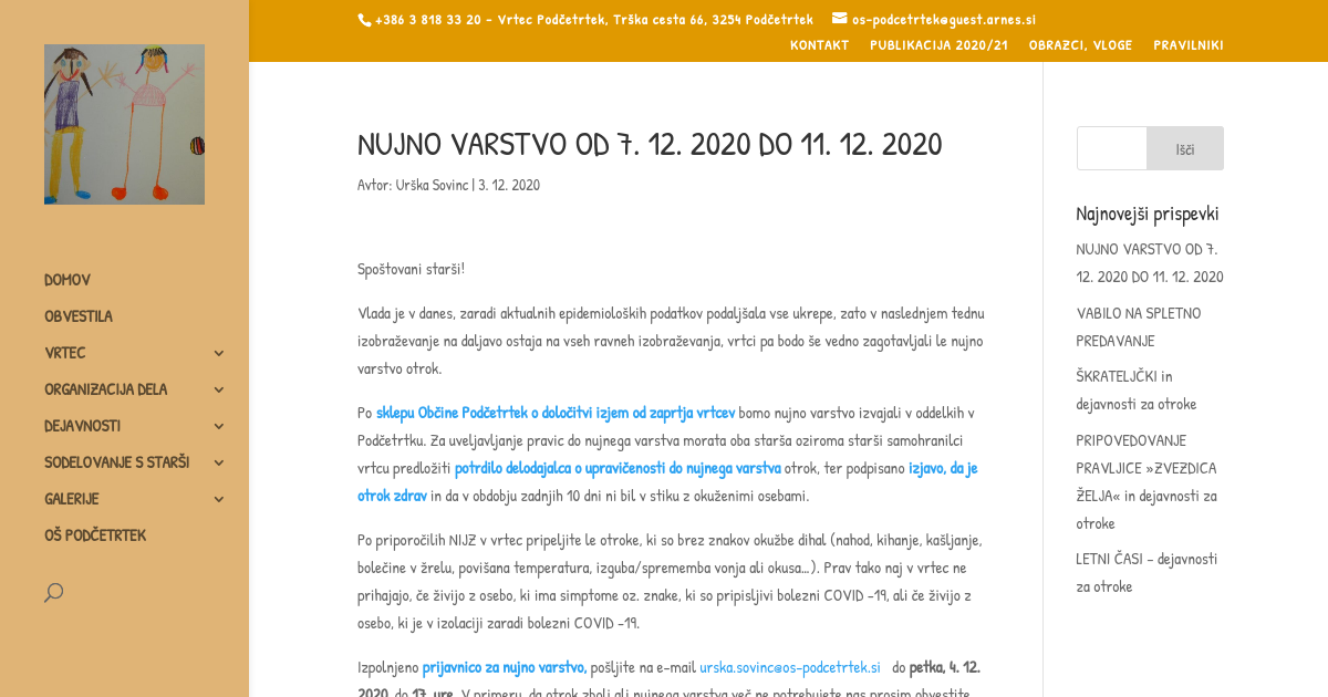 NUJNO VARSTVO OD 7. 12. 2020 DO 11. 12. 2020