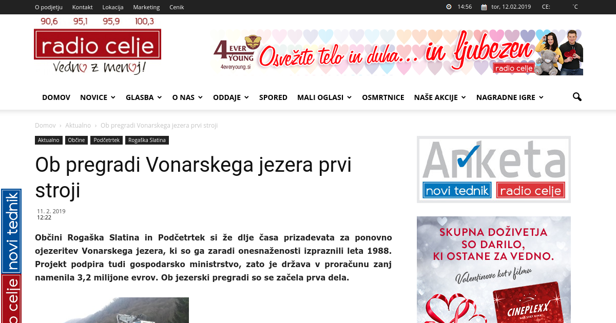 Občini Rogaška Slatina in Podčetrtek si že dlje časa prizadevata za ponovno ojezeritev Vonarskega jezera, ki so ga zaradi onesnaženosti izpraznili leta 1988. Projekt podpira tudi gospodarsko ministrstvo, zato je država v proračunu zanj namenila 3,2 milijone evrov. Ob jezerski pregradi so se začela prva dela. Vonarsko jezero je terjalo izselitev 36 družin, a ni