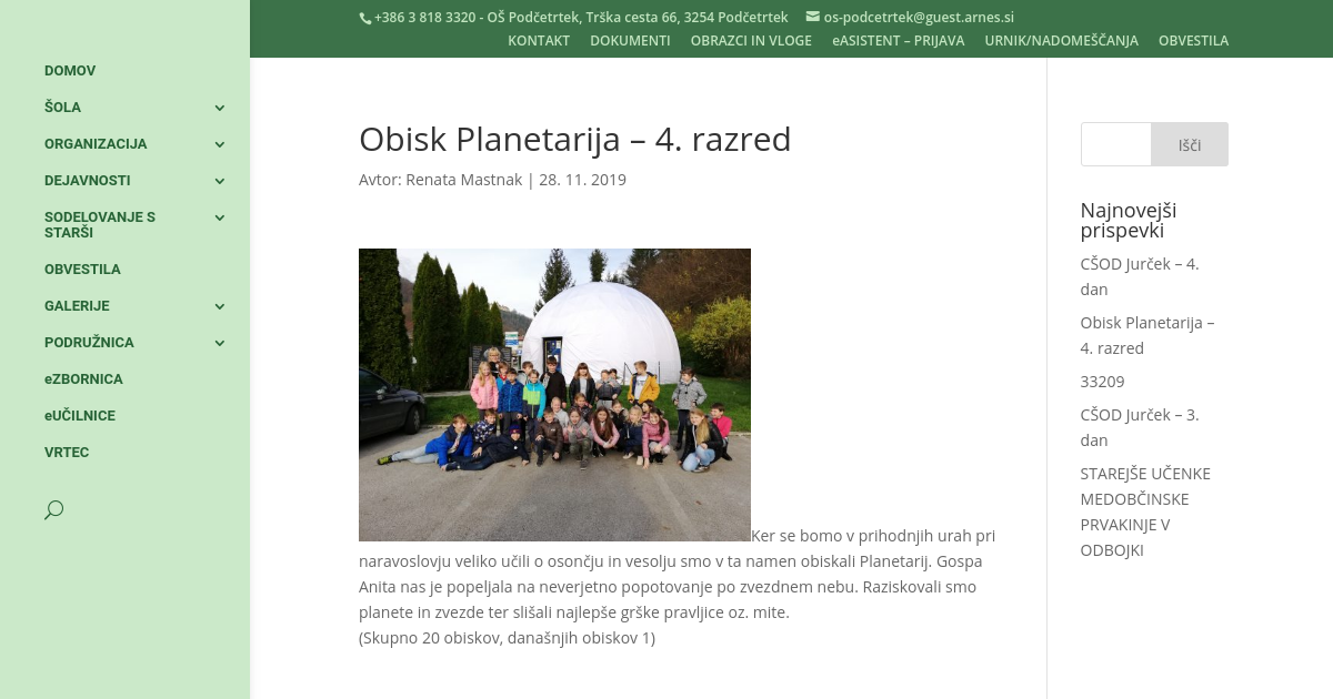 Ker se bomo v prihodnjih urah pri naravoslovju veliko učili o osončju in vesolju smo v ta namen obiskali Planetarij. Gospa Anita nas je popeljala na neverjetno popotovanje po zvezdnem nebu. Raziskovali smo planete in zvezde ter slišali najlepše grške pravljice oz. mite.