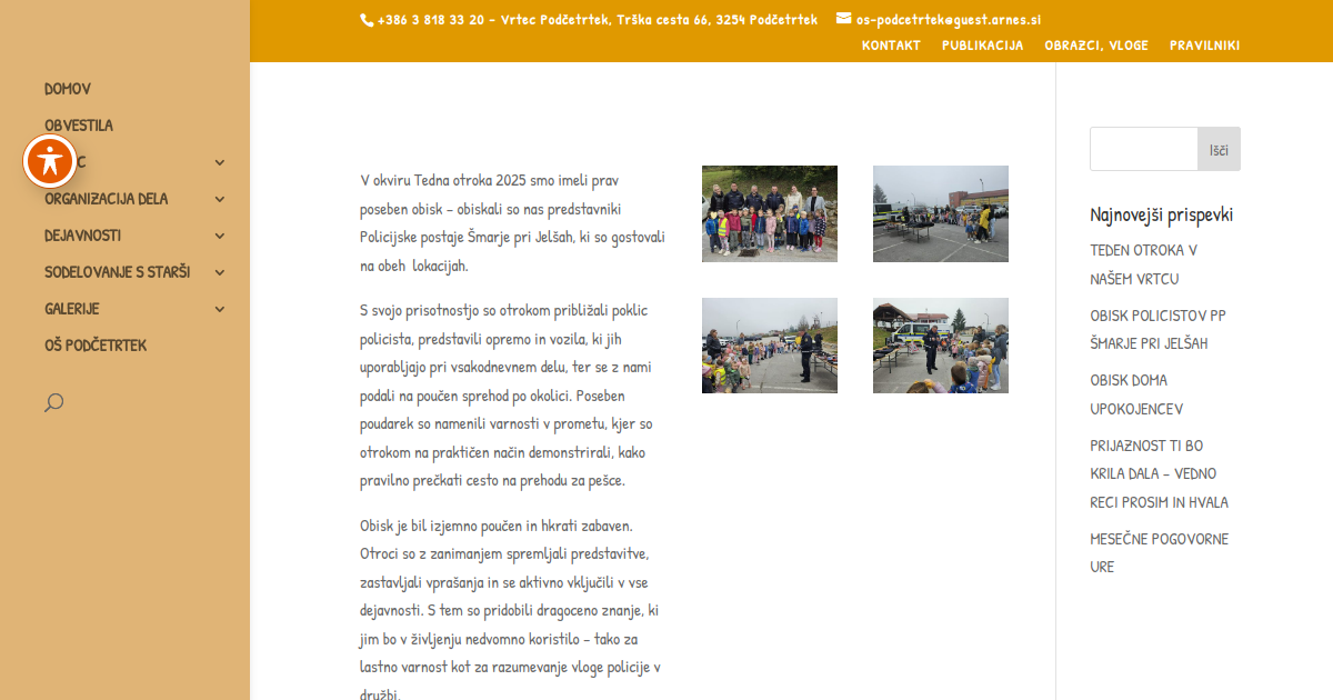 V okviru Tedna otroka 2025 smo imeli prav poseben obisk – obiskali so nas predstavniki Policijske postaje Šmarje pri Jelšah, ki so gostovali na obeh lokacijah.