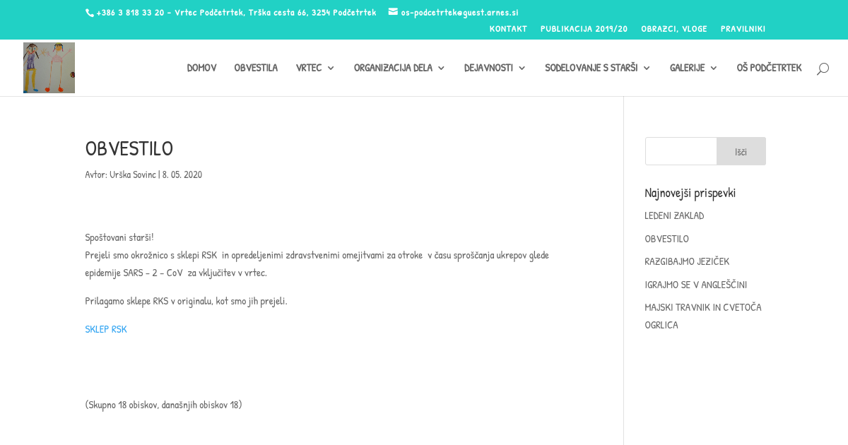 Spoštovani starši! Prejeli smo okrožnico s sklepi RSK in opredeljenimi zdravstvenimi omejitvami za otroke v času sproščanja ukrepov glede epidemije SARS – 2 – CoV za vključitev v vrtec.
