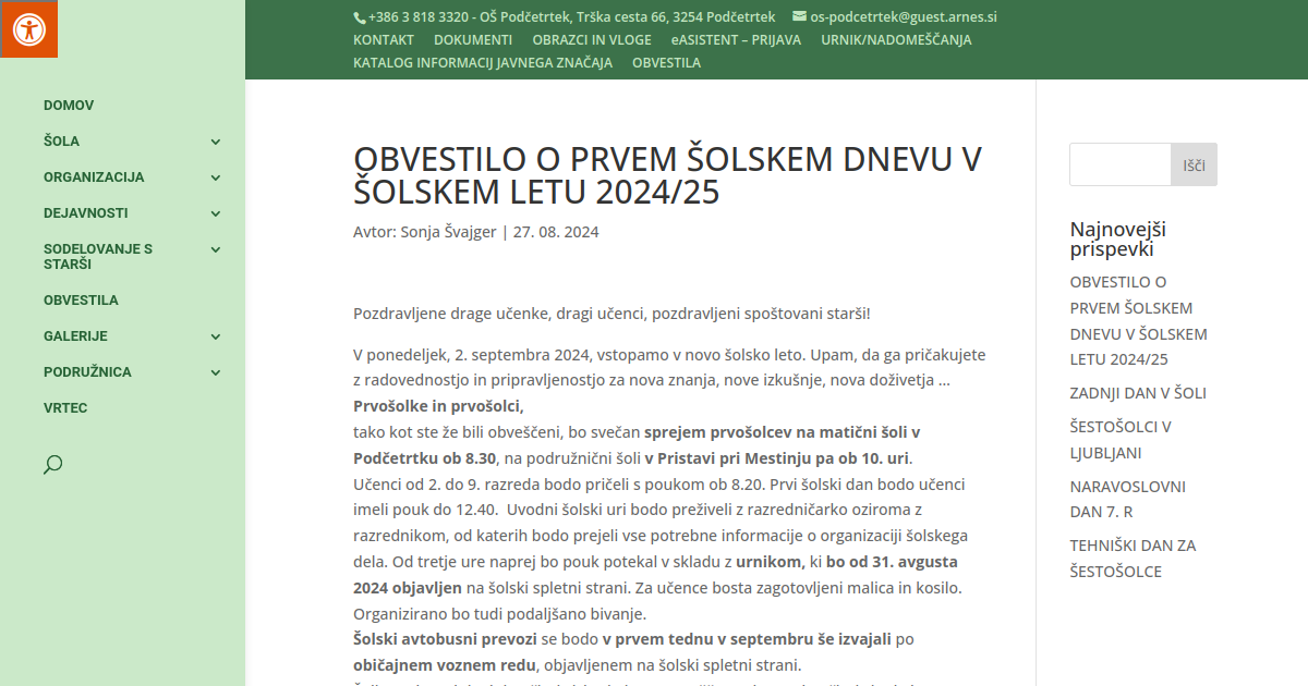 OBVESTILO O PRVEM ŠOLSKEM DNEVU V ŠOLSKEM LETU 2024/25