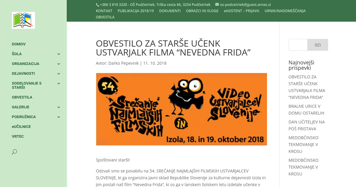 OBVESTILO ZA STARŠE UČENK USTVARJALK FILMA “NEVEDNA FRIDA”