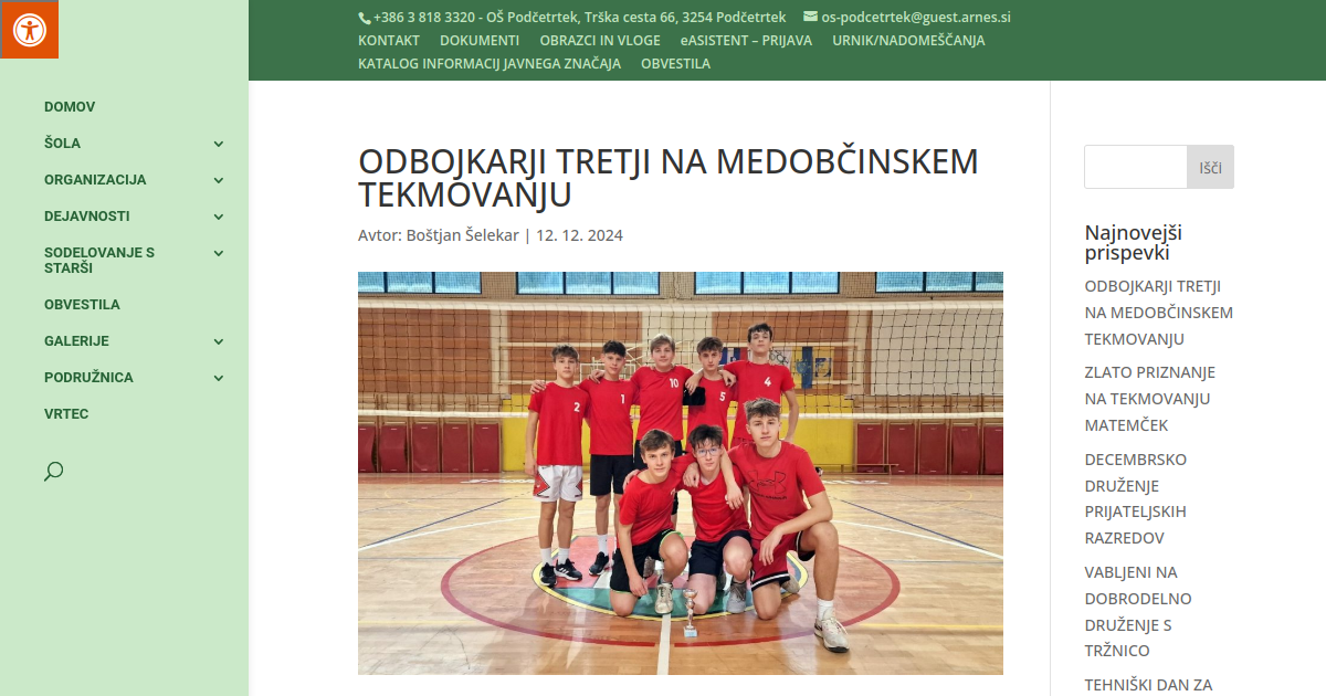 Letošnje tekmovanje v odbojki za starejše učence je potekalo na OŠ Rogatec. Naši fantje so na turnirju zabeležili zmago proti I. OŠ Rogaška Slatina ter poraza v dvobojih z OŠ Rogatec in OŠ Šmarje pri Jelšah, kar jim je prineslo končno tretje mesto.
