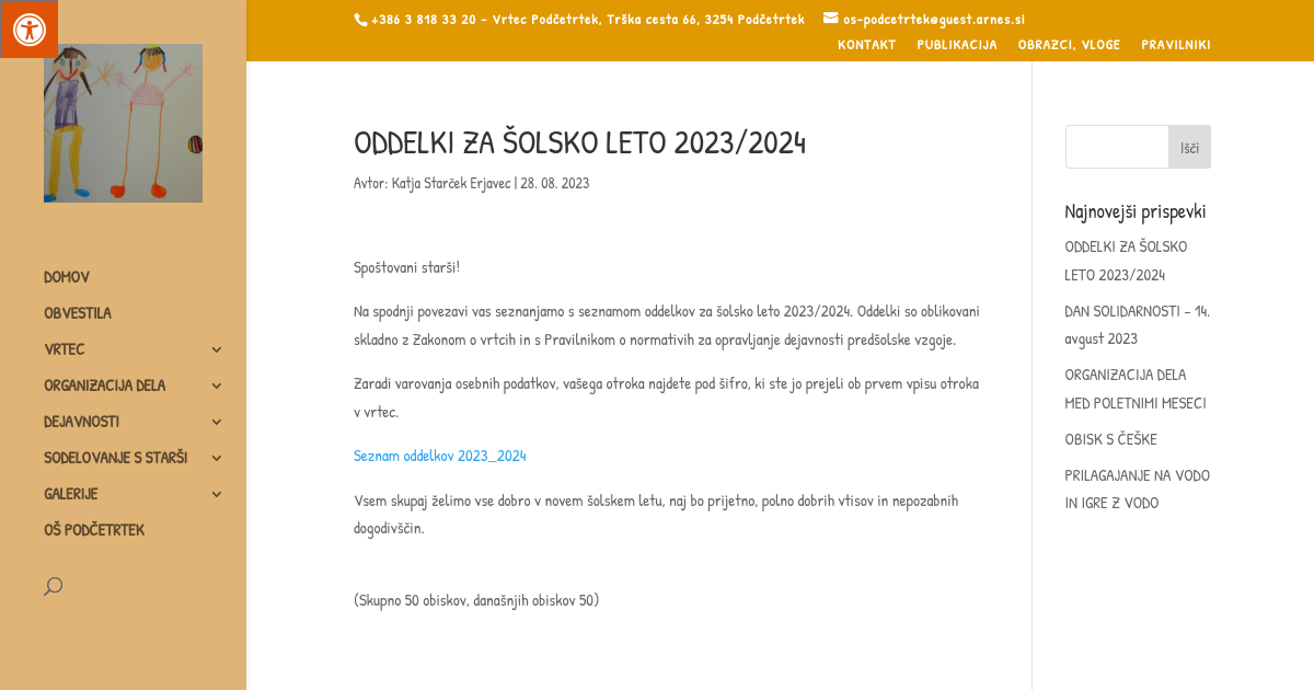 ODDELKI ZA ŠOLSKO LETO 2023/2024