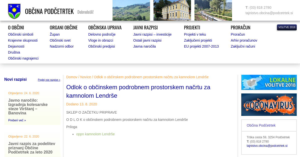 SKLEP O ZAČETKU PRIPRAVE O D L O K o občinskem podrobnem prostorskem načrtu za kamnolom Lendrše Priloga oppn kamnolom Lendrše