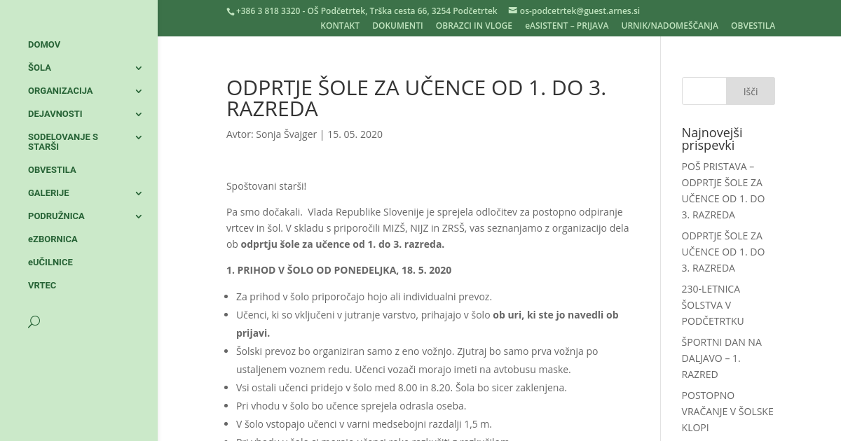 ODPRTJE ŠOLE ZA UČENCE OD 1. DO 3. RAZREDA