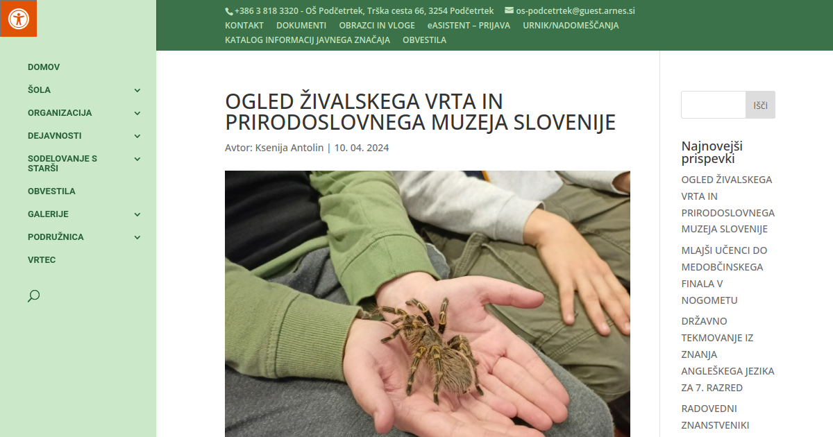 V torek, 9. 4. 2024, je za sedmošolce potekal naravoslovni dan. Učenci so v Ljubljani obiskali živalski vrt ter Prirodoslovni muzej Slovenije. Zbrali so ves pogum in premagali strah pred pajki in kačami.