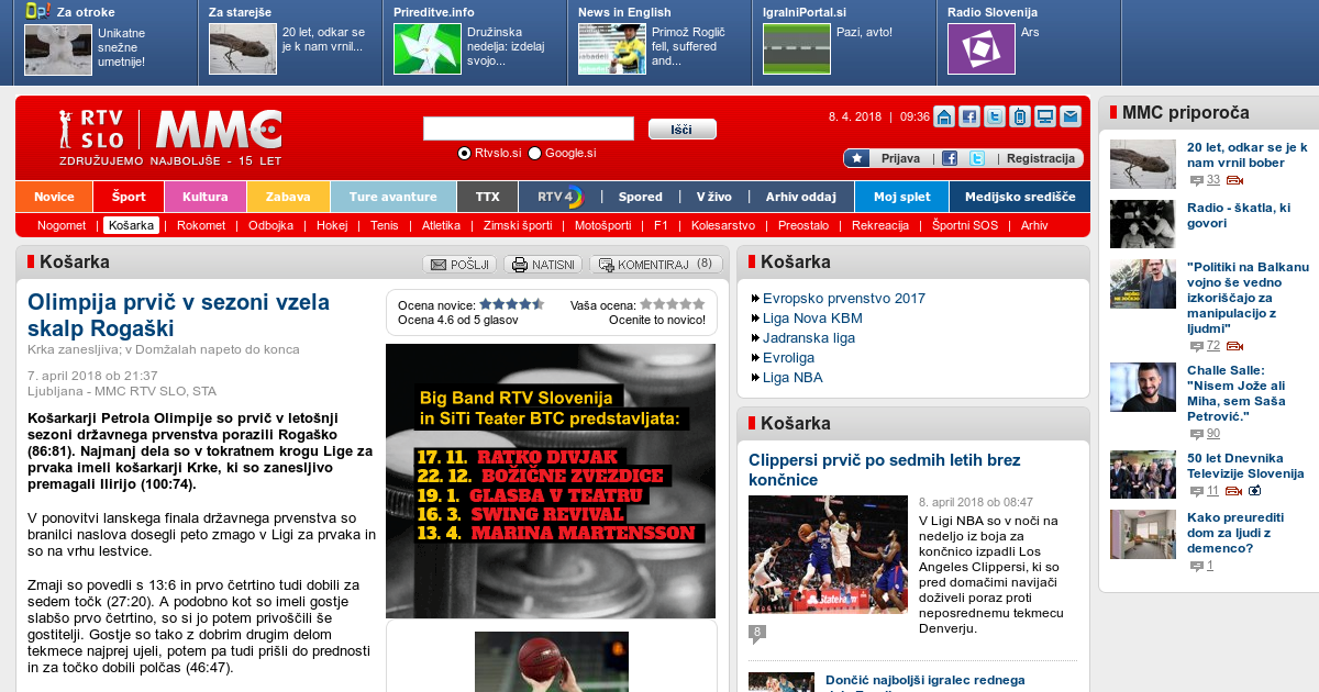 Košarkarji Petrola Olimpije so prvič v letošnji sezoni državnega prvenstva porazili Rogaško ...