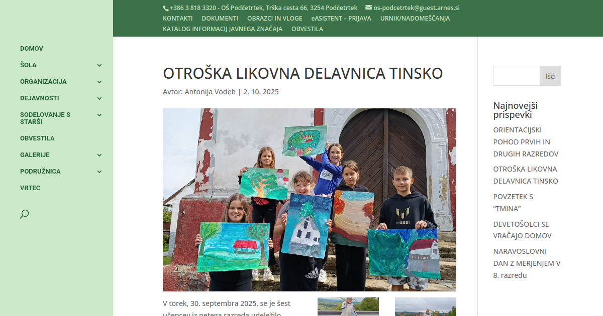 V torek, 30. septembra 2025, se je šest učencev iz petega razreda udeležilo Otroške likovne delavnice, ki jo je pripravilo Turistično društvo Tinsko.