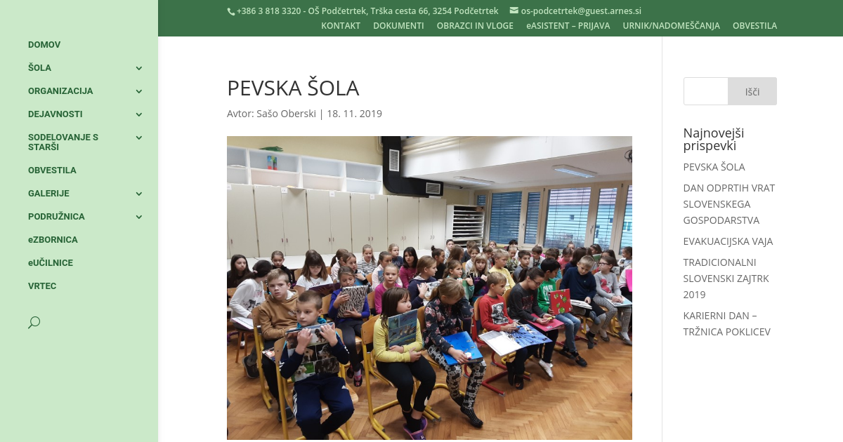 Minulo soboto so se učenci otroških pevskih zborov osnovne šole Podčetrtek in podružnične šole Pristava ter mladinskega in deškega zbora osnovne šole Podčetrtek udeležili pevske šole. V prijetnem vzdušju je pevsko dopoldne hitro minilo. Nove pesmi in glasbene točke, ki smo jih pripravljali, bodo ugledale luč sveta na dobrodelnem koncertu.
