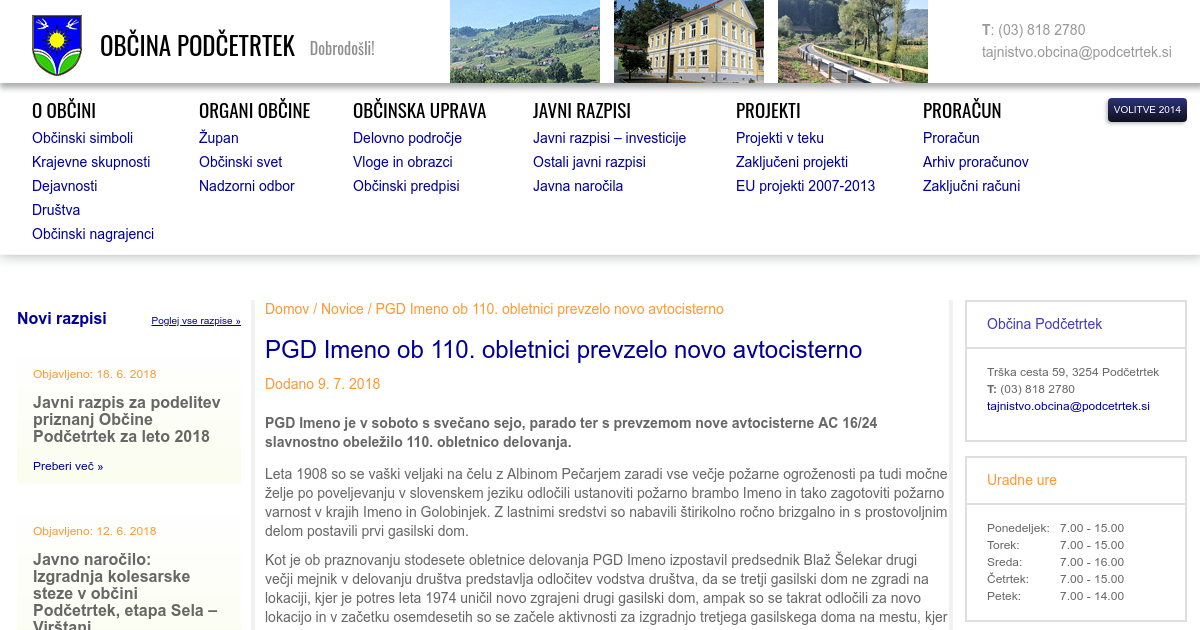 PGD Imeno je v soboto s svečano sejo, parado ter s prevzemom nove avtocisterne AC 16/24 slavnostno obeležilo 110. obletnico delovanja. Leta 1908 so se vaški veljaki na čelu z Albinom Pečarjem zaradi vse večje požarne ogroženosti pa tudi močne želje po poveljevanju v slovenskem jeziku odločili ustanoviti požarno brambo Imeno in tako zagotoviti požarno
