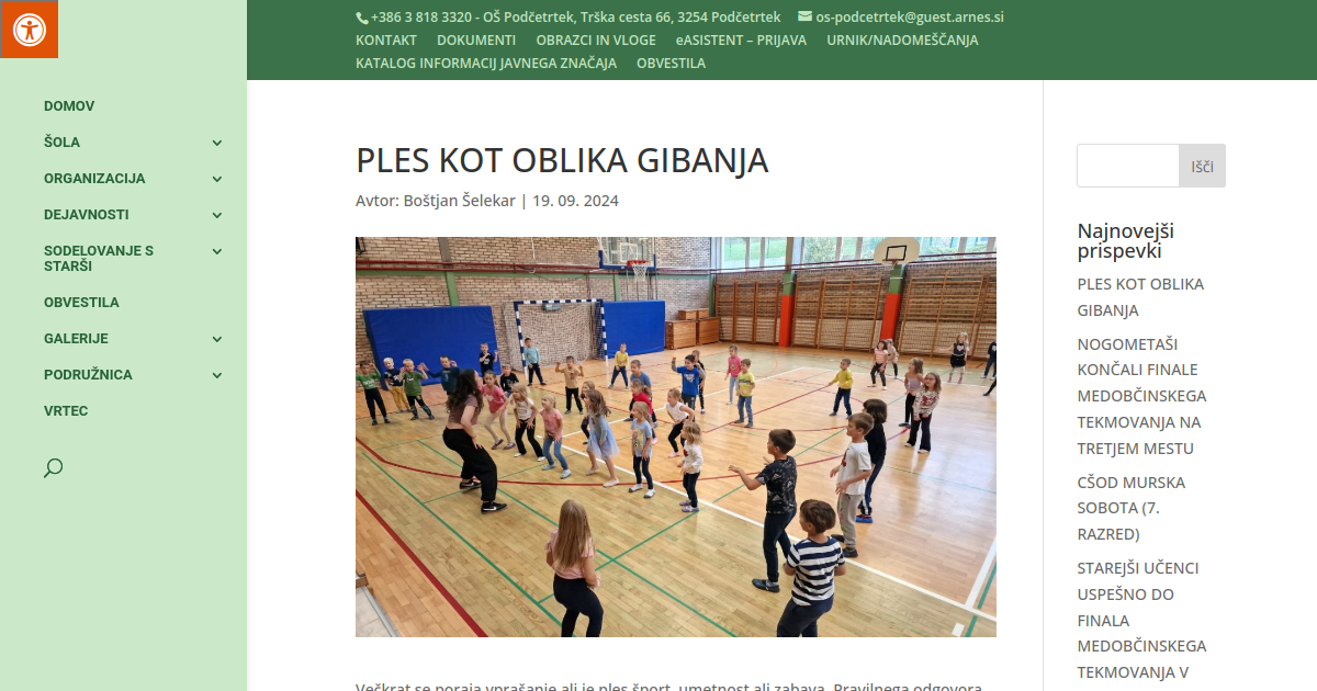 Večkrat se poraja vprašanje ali je ples šport, umetnost ali zabava. Pravilnega odgovora ni, a najbližje resnici je, da vsakega po malo. V četrtek, 19. 9., smo na naši šoli gostili Taro s Plesnega studia Dancero, ki je učencem razredne stopnje, v okviru rednih ur športa, skozi igro in kratke koreografije predstavila ples.