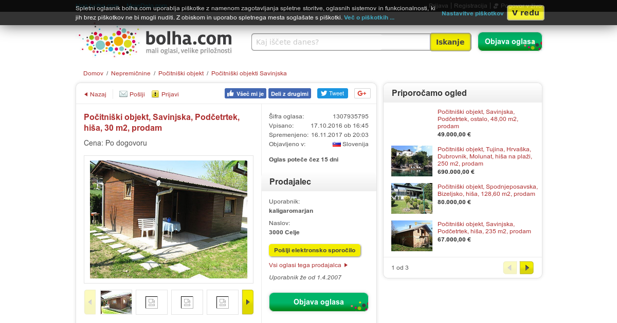 Tip: Hiša Velikost: 30, 00 m2 Leto izgradnje: 2000 Zadnja adaptacija: 2015