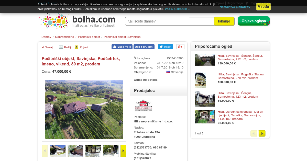 Kraj/naselje: Imeno Tip:vikend Velikost: 80, 00 m2 Velikost parcele: 1200, 00 m2 Leto izgradnje: 1690 Zadnja adaptacija: 1983