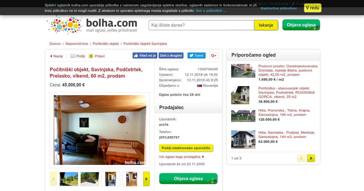 Kraj/naselje: Prelasko Tip:vikend Velikost: 60, 00 m2 Velikost parcele: 2223, 00 m2 Leto izgradnje: 1978 Zadnja adaptacija: 2016