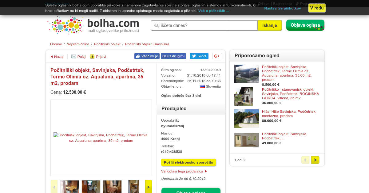 Kraj/naselje: Terme Olimia Tip:apartma Velikost: 35, 00 m2 Velikost parcele: 50, 00 m2 Leto izgradnje: 2007 Zadnja adaptacija: 2017