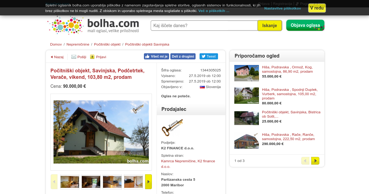 Kraj/naselje: Verače Tip:vikend Velikost: 103, 80 m2 Velikost parcele: 4750, 00 m2 Leto izgradnje: 1965 Zadnja adaptacija: 2004