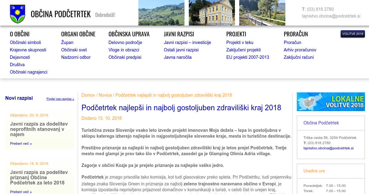 Turistična zveza Slovenije vsako leto izvede projekt imenovan Moja dežela – lepa in gostoljubna v sklopu katerega izberejo najlepše in najgostoljubnejše slovenske kraje, mesta in turistične destinacije. Prestižno priznanje za najlepši in najbolj gostoljuben zdraviliški kraj je letos prejel Podčetrtek. Tretje mesto med glampi je prav tako šlo v Podčetrtek, zasedel ga je Glamping Olimia Adria