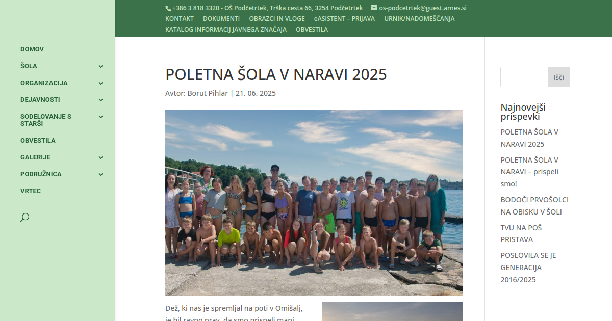 Dež, ki nas je spremljal na poti v Omišalj, je bil ravno prav, da smo prispeli manj utrujeni in polni pričakovanja. Za nami je teden, ki je bil poln novih dogodivščin, novih znanj, smeha, včasih tudi joka, raziskovanja, vetra v laseh in valov pod supi. Skozi dneve smo se preizkusili v številnih dejavnostih, kjer je bilo čutiti šolske predmete na nekoliko drugačen način. Med drugim smo izvedli športni in naravoslovni dan, kjer je bilo gibanje prepleteno z učenjem, raziskovanjem in opazovanjem narave. Posebni izkušnji sta bili tudi vožnja z ladjico, ki nam je pričarala občutek svobode, in nakupovanje, kjer so učenci uporabili znanje matematike, saj so preštevali evre, primerjali cene in samostojno odločali, kaj bodo kupili. Veliko smo plavali, saj smo imeli res odlične plavalce. Voda je postala naš drugi dom za učenje in urjenje plavalnih veščin in krepitev samozavesti. Čeprav se včasih ni izšlo vse po naših pričakovanjih in smo bili res utrujeni, nam je vztrajnost in spodbuda učiteljev dala novi zagon. Na supih smo lovili ravnotežje, se učili spretnosti in predvsem gradili zaupanje in sodelovanje. Zadnji večer smo zaključili s podelitvijo priznanj za dosežke ter s programom s petjem, plesom in iskrenim navdušenjem, ki ga ne more nadomestiti nobena učilnica. Zagotovo si bomo zapomnili prva prava prijateljstva, drobnih zmag nad samim seboj in topline skupine, ki jo zgradimo, ko se znajdemo v novih okoliščinah. Skupaj smo ustvarili nekaj lepega.