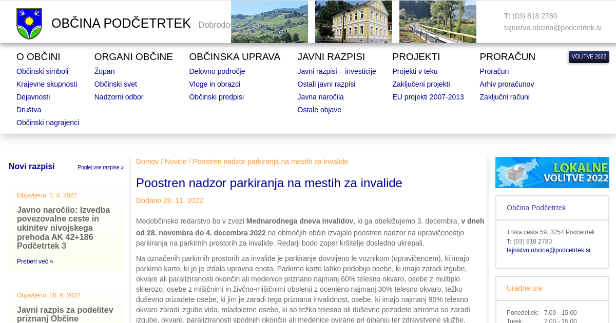 Medobčinsko redarstvo bo v zvezi Mednarodnega dneva invalidov, ki ga obeležujemo 3. decembra, v dneh od 28. novembra do 4. decembra 2022 na območjih občin izvajalo poostren nadzor na upravičenostjo parkiranja na parkirnih prostorih za invalide. Redarji bodo zoper kršitelje dosledno ukrepali. Na označenih parkirnih prostorih za invalide je parkiranje dovoljeno le voznikom (upravičencem), ki imajo