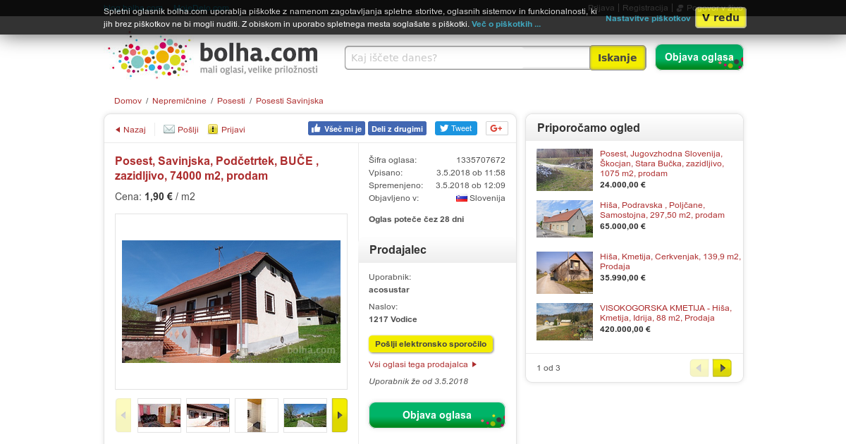 Tip:Zazidljivo Kraj/naselje: BUČE Velikost: 74000, 00 m2 Zemljiška knjiga:urejena Dodaten opis: Objekti in parcele na posestvu v BUČAH, OBČINA KOZJE: