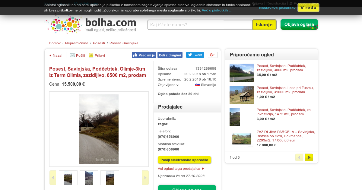 Tip:Zazidljivo Kraj/naselje: Olimje-3km iz Term Olimia Velikost: 6500, 00 m2 Zemljiška knjiga:urejena Dodaten opis: Na izredno lepi mirni sončni lokaciji,