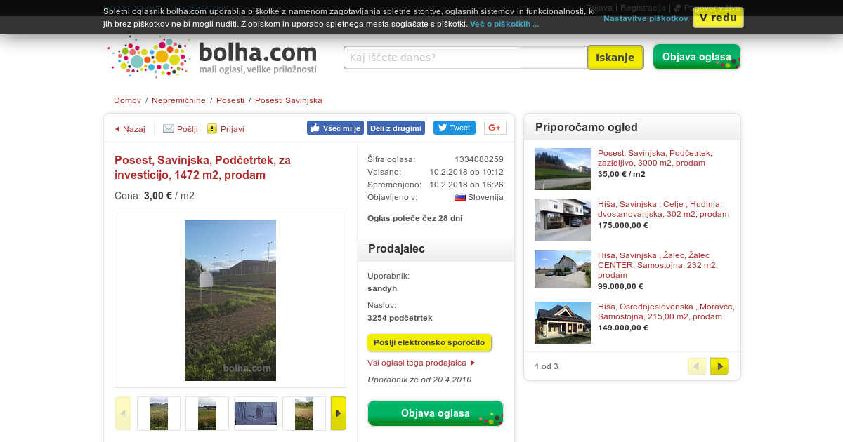 Tip:Za investicijo Velikost: 1472, 00 m2 Zemljiška knjiga:urejena Dodaten opis: Ugodno prodam parcelo ki se nahaja na odlični lokaciji cca 150 m od hotelov