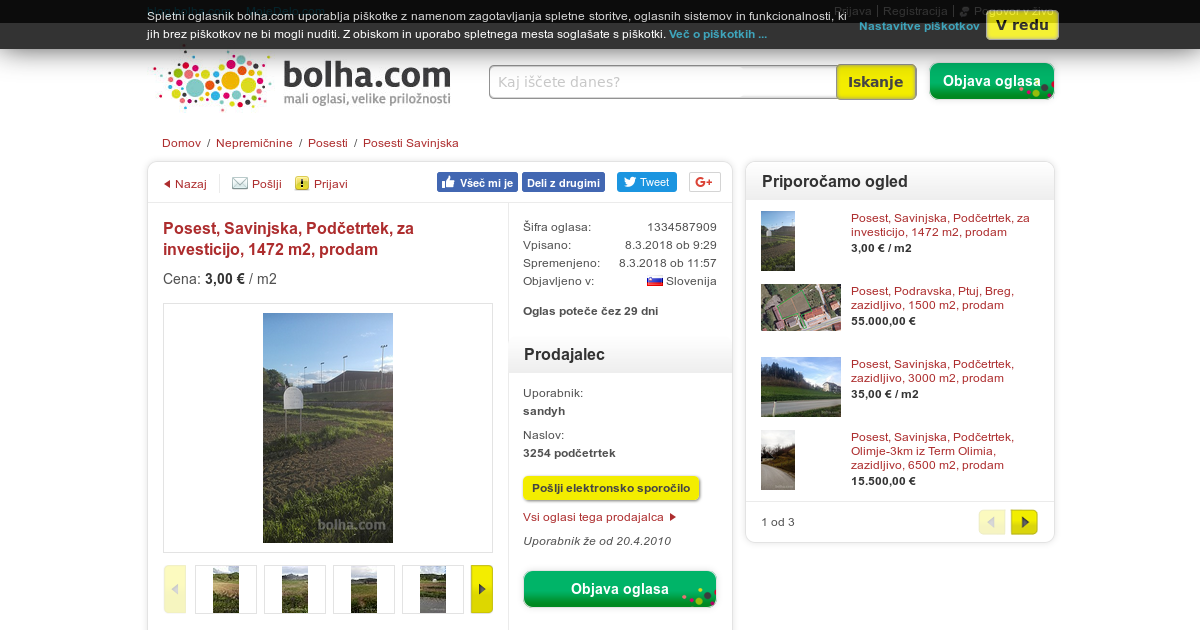 Tip:Za investicijo Velikost: 1472, 00 m2 Dodaten opis: Ugodno prodam parcelo ki se nahaja na odlični lokaciji cca 150 m od hotelov terme OLIMIA . lastnik