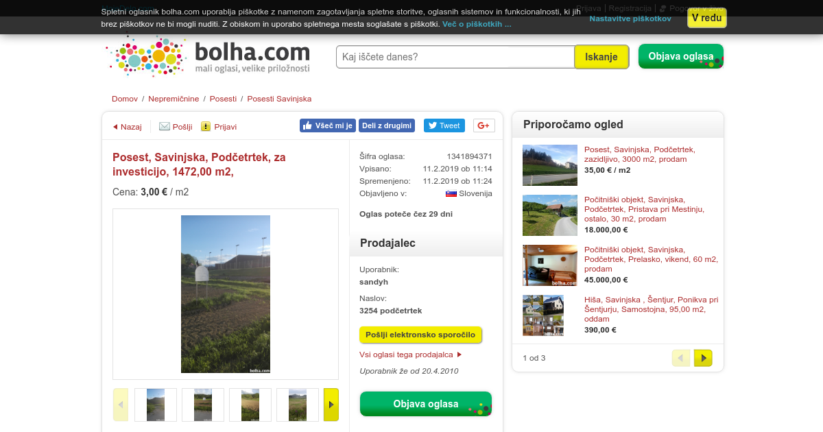 Tip:Za investicijo Velikost: 1472, 00 m2 Zemljiška knjiga:urejena Dodaten opis: Ugodno prodam parcelo v neposredni bližini hotelov sotelia -Atomske toplice