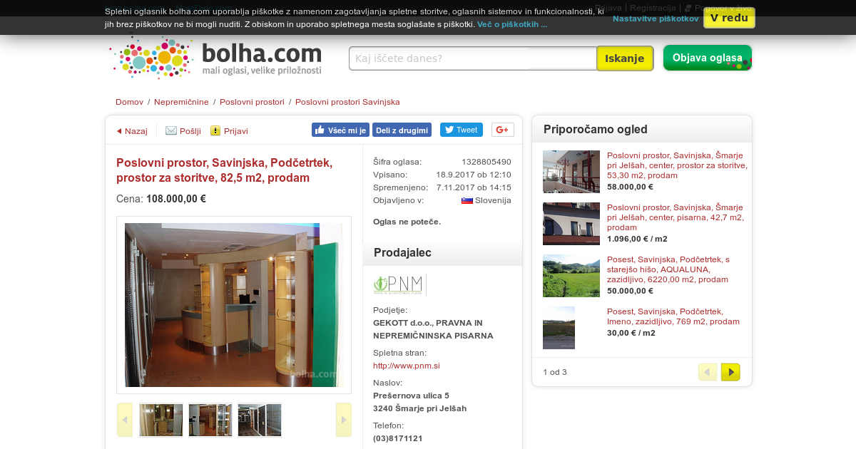 Tip posl. prostora: prostor za storitve Velikost: 82, 50 m2 Leto izgradnje: 1999 Nadstropje: Pritličje