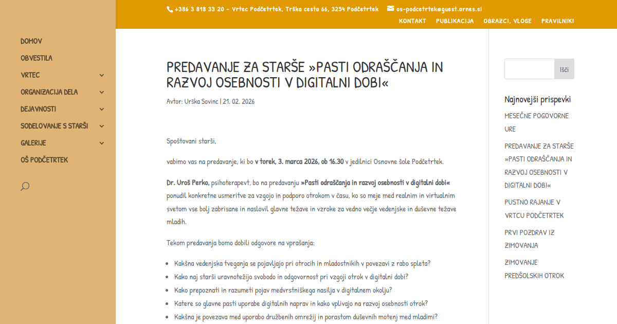 PREDAVANJE ZA STARŠE »PASTI ODRAŠČANJA IN RAZVOJ OSEBNOSTI V DIGITALNI DOBI«