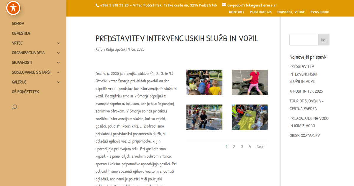 Dne, 4. 6. 2025 je starejše oddelke (1., 2., 3. in 9.) Otroški vrtec Šmarje pri Jelšah povabil na dan odprtih vrat – predstavitev intervencijskih služb in vozil. Po zajtrku smo se v Šmarje odpeljali z dvonadstropnim avtobusom, kar je bilo še posebej zanimivo otrokom. V Šmarju so nas pričakale različne intervencijske službe, kot so vojaki, gasilci, policisti, Rdeči križ, … Z otroci smo prisluhnili predstavitvi posameznih služb, si ogledali njihova vozila, pripomočke, ki jih uporabljajo pri svojem delu. Pri gasilcih smo »gasili« s peno, ciljali z vodnim cukrom v tarčo, spoznali kakšne pripomočke uporabljajo gasilci. Pri policistih smo spoznali njihovo vozilo in si ga tudi ogledali, nad nami je poletel tudi policijski helikopter. Pri vojakih smo spoznali njihovo opremo, ki smo jo lahko pomerili in seveda smo se preizkusili tudi v premagovanju vojaškega poligona. Pri Rdečem križu so gospe poskrbele za naše »rane«, otroci so spoznali kaj je njihov namen, kaj delajo. Spoznali pa smo tudi reševalce, kakšne pripomočke uporabljajo pri svojem delu ter seznanili smo se z reševalnim vozilom. Po končanem ogledu smo se z avtobusom vrnili v vrtec. Zahvaljujemo se Otroškemu vrtcu Šmarje pri Jelšah za povabilo in gostoljubje. Besedilo zapisala: Katja Lipošek, dipl. vzg. Foto: Katja Lipošek, Polonca Šeligo, Vesna Kovač