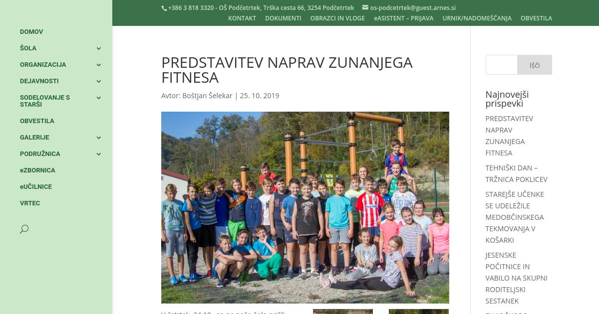 V četrtek, 24.10., so na našo šolo prišli predstavniki s podjetja Workout Playgraund, ki so bili izvajalci postavitve igral in zunanjega fitnesa pri našem stadionu. Namen obiska je bil predvsem predstavitev in demonstracija pravilne uporabe vseh fitnes naprav. V okviru redne šolske ure športa so naši petošolci in sedmošolci spoznali, kako se pravilno izvajajo naloge na posameznih orodjih, dodatno znanje pa smo pridobili tudi strokovni delavci šole.