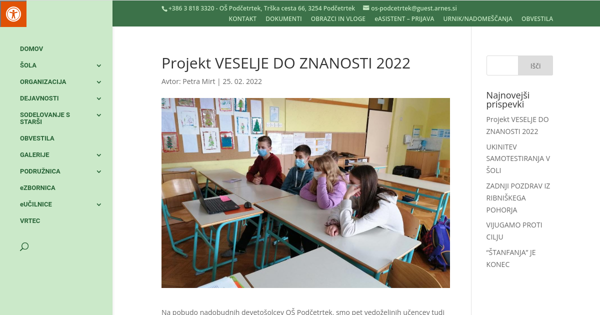 Na pobudo nadobudnih devetošolcev OŠ Podčetrtek, smo pet vedoželjnih učencev tudi letos prijavili na projekt Veselje do znanosti.