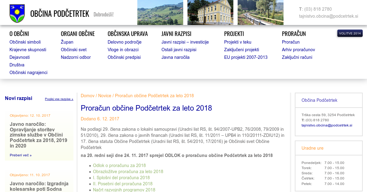 Na podlagi 29. člena zakona o lokalni samoupravi (Uradni list RS, št. 94/2007-UPB2, 76/2008, 79/2009 in 51/2010), 29. člena zakona o javnih financah (Uradni list RS, št. 11/2011 – UPB4 in 110/20111-ZDIU12) in 17. člena statuta Občine Podčetrtek (Uradni list RS, št. 54/2010, 17/2016) je Občinski svet Občine Podčetrtek na 20. redni seji dne 24.