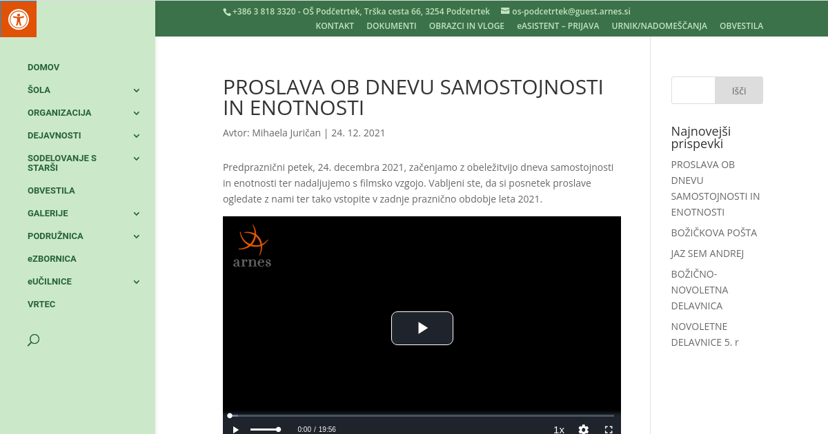 Predpraznični petek, 24. decembra 2021, začenjamo z obeležitvijo dneva samostojnosti in enotnosti ter nadaljujemo s filmsko vzgojo. Vabljeni ste, da si posnetek proslave ogledate z nami ter tako vstopite v zadnje praznično obdobje leta 2021.