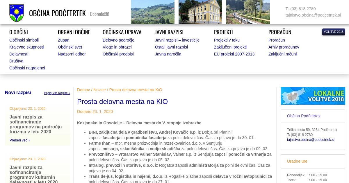 Kozjansko in Obsotelje – Delovna mesta do V. stopnje izobrazbe BINI, zaključna dela v gradbeništvu, Andrej Kovačič s.p. iz Dobja pri Planini zaposli fasaderja in pomočnika fasaderja za polni delovni čas. Čas za prijavo je do 30. 01. Farme Ihan – mpr, mesna proizvodnja in razsekovalnica d.o.o. v Šentjurju zaposli mesarja, skladiščnika in vodjo skladišča za polni delovni čas. Čas za prijavo je do 09. 02. Prevozništvo –