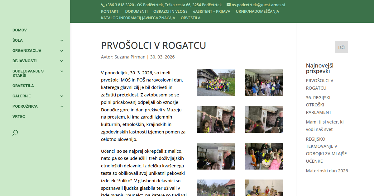 V ponedeljek, 30. 3. 2026, so imeli prvošolci MOŠ in POŠ naravoslovni dan, katerega glavni cilj je bil doživeti in začutiti preteklost. Z avtobusom so se polni pričakovanj odpeljali ob vznožje Donačke gore in dan preživeli v Muzeju na prostem, ki ima zaradi izjemnih kulturnih, etnoloških, krajinskih in zgodovinskih lastnosti izjemen pomen za celotno Slovenijo.