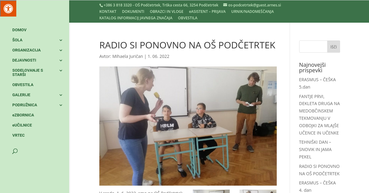 V sredo, 1. 6. 2022, smo na OŠ Podčetrtek ponovno gostili dva radijska voditelja iz Radia SI (Radio Slovenia International), ki je prvi in edini tujejezični radijski program v Sloveniji. Kot 4. nacionalni radijski program deluje v okviru RTV Slovenija.