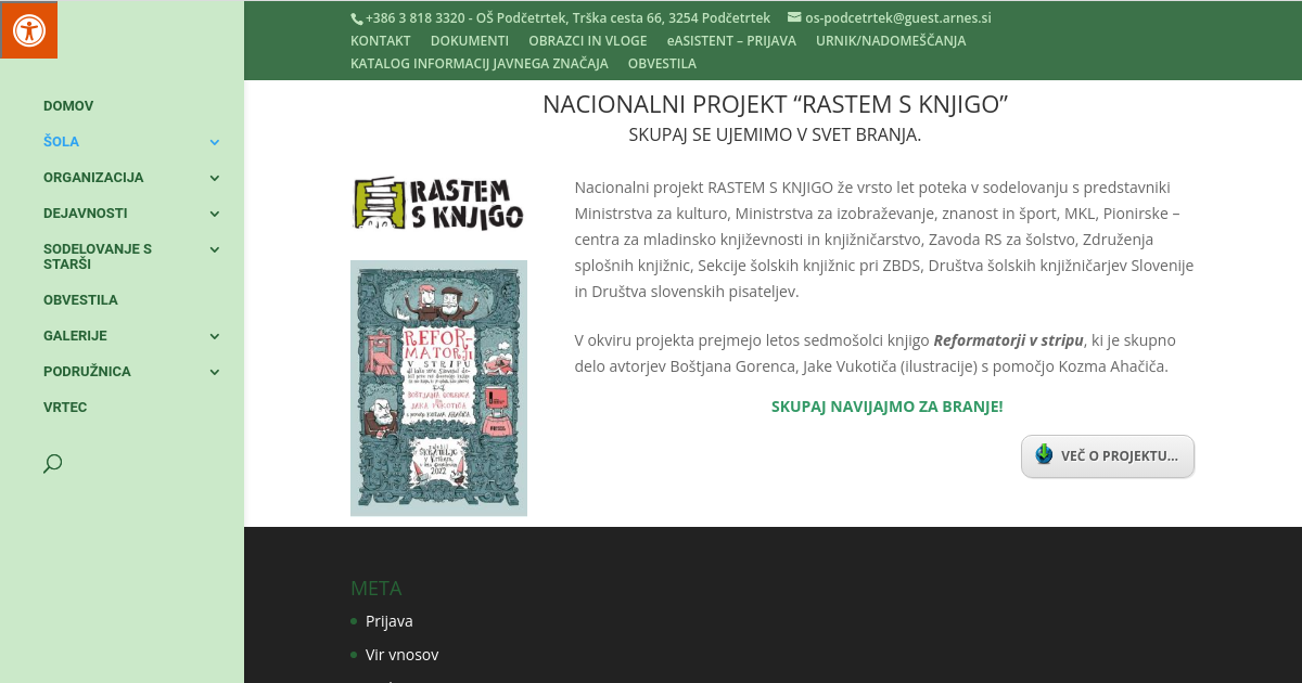 »Rastem s knjigo« je nacionalni projekt spodbujanja bralne kulture. Cilji projekta so motivirati osnovnošolce in srednješolce za branje mladinskega leposlovja slovenskih avtorjev ter jih spodbuditi k obiskovanju splošnih knjižnic.