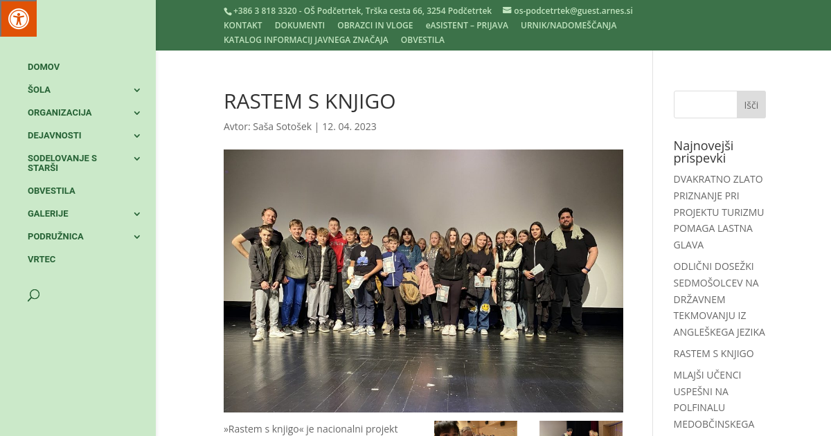 »Rastem s knjigo« je nacionalni projekt spodbujanja bralne kulture. Cilji projekta so motivirati osnovnošolce za branje mladinskega leposlovja slovenskih avtorjev ter jih spodbuditi k obiskovanju splošnih knjižnic.