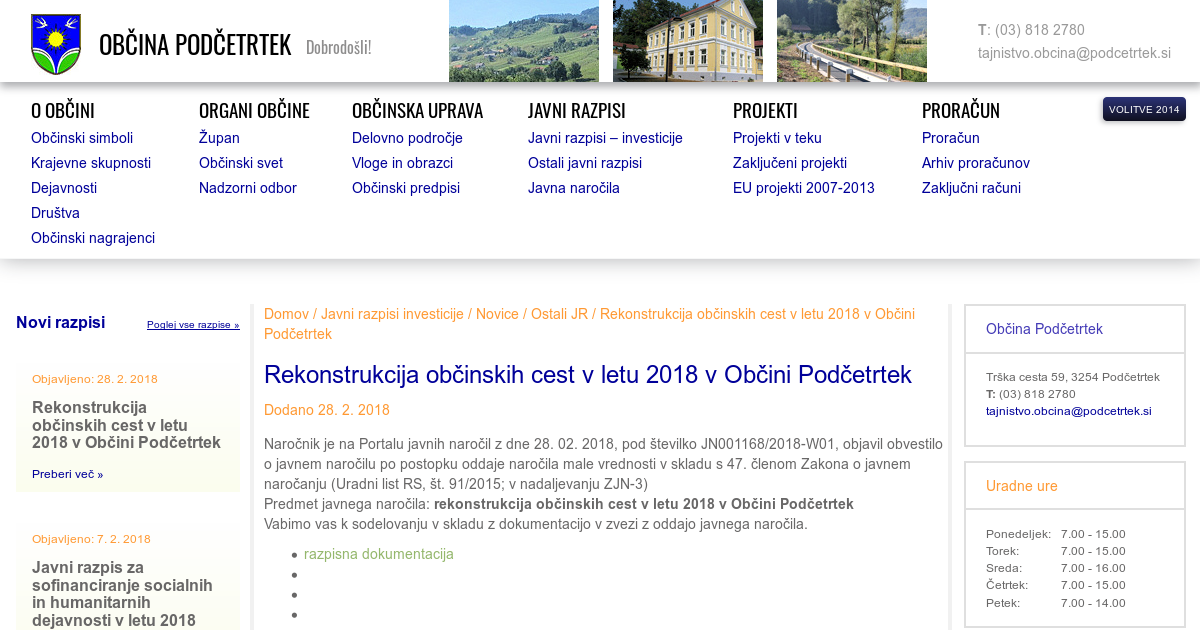 Rekonstrukcija občinskih cest v letu 2018 v Občini Podčetrtek