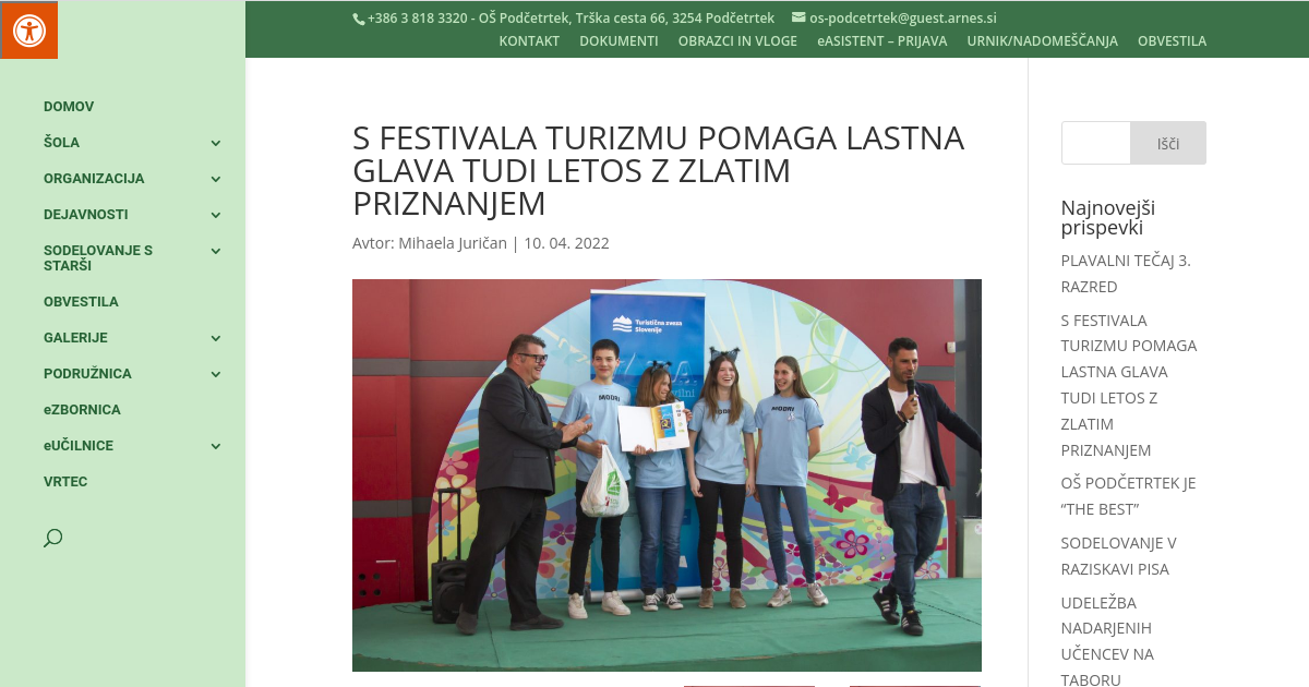 OŠ Podčetrtek že vrsto let sodeluje pri projektu Turizmu pomaga lastna glava, ki poteka v organizaciji Turistične zveze Slovenije in Zavoda RS za šolstvo v sodelovanju z regijskimi turističnimi zvezami. Omenjeni projekt je celovit sistem organiziranega delovanja osnovnošolske mladine v turizmu. Njegova vsebina je vezana na raziskovanje turizma v domačem kraju, ugotavljanju možnosti za hitrejši razvoj in oblikovanje take ponudbe, ki bo vzpodbudila podjetništvo in trženje naravnih danosti ter tudi ostale ponudbe v vseh možnih oblikah.