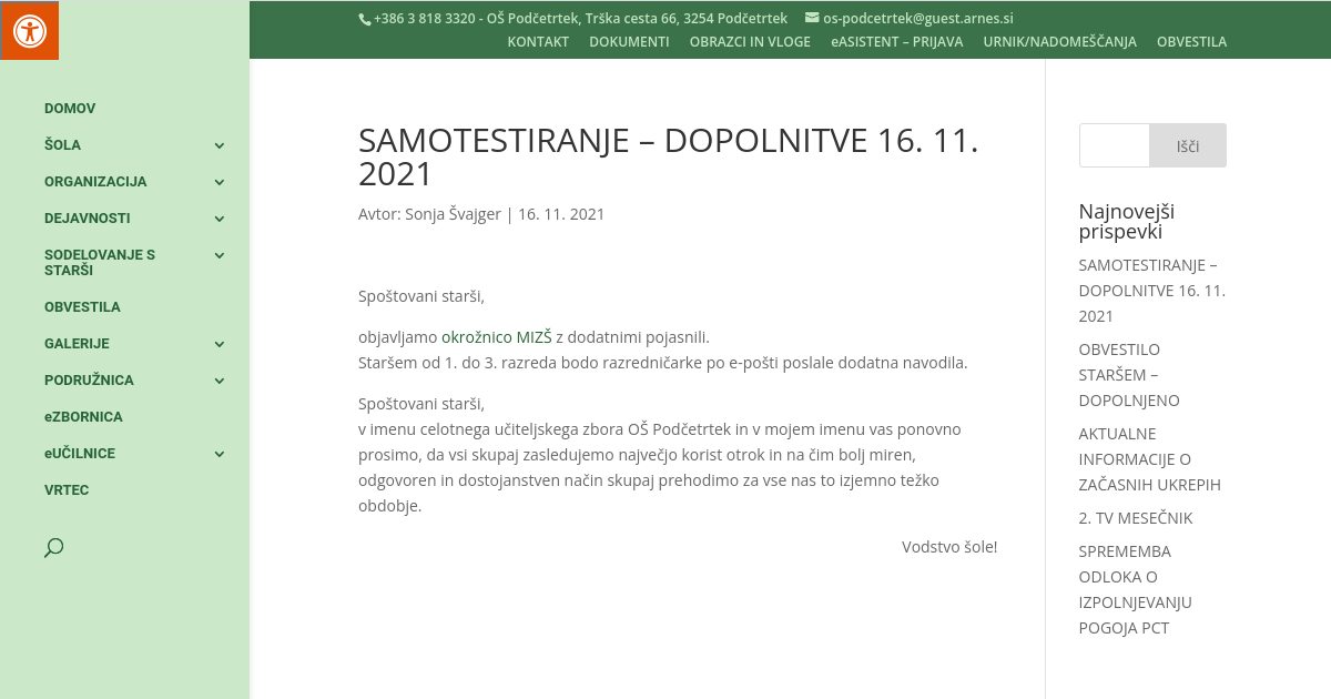 SAMOTESTIRANJE – DOPOLNITVE 16. 11. 2021