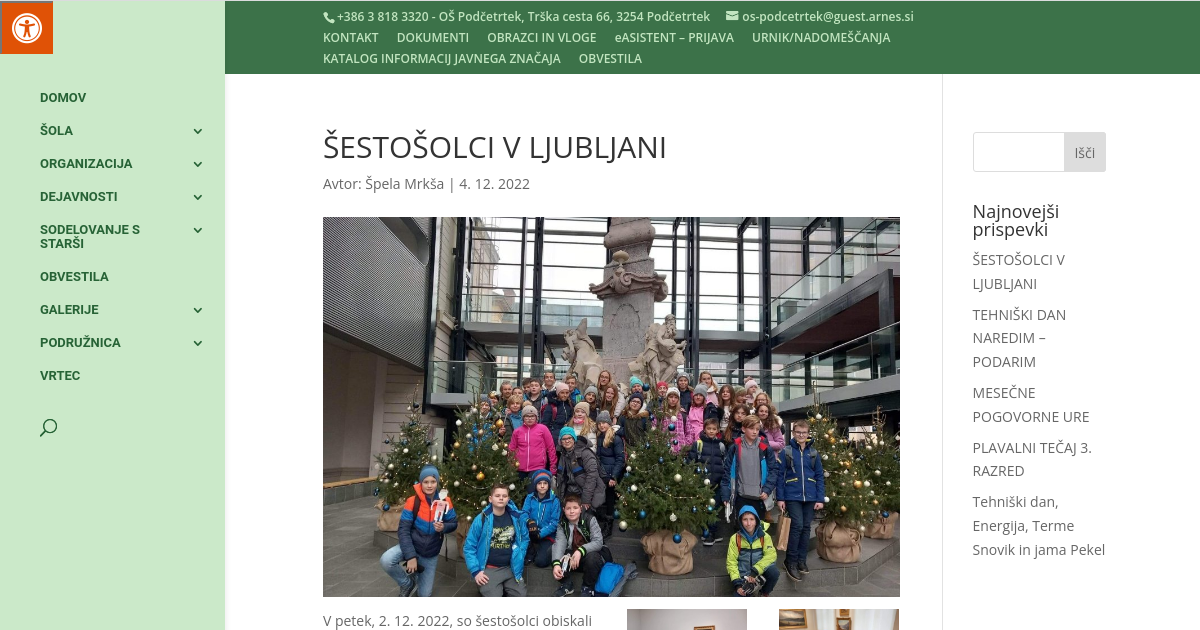 V petek, 2. 12. 2022, so šestošolci obiskali naše glavno mesto. Spoznali so slovensko prestolnico kot upravno, politično, kulturno, znanstveno, šolsko, gospodarsko in prometno središče naše države. Sprehodili smo se po ljubljanskih ulicah, trgih in mostovih, ogledali smo si pomembne kulturne in upravne ustanove, sprehodili smo se skozi tržnico. Naučili smo se veliko novega o rimski Emoni. Ob spomenikih smo se spominjali življenja in dela naših umetnikov in znanstvenikov. V narodni galeriji smo si ogledali razstavo »Galerijske slike in ljudske pripovedi«, na to temo smo poustvarjali na delavnicah. Učenci so utrdili in poglobili znanje, pridobljeno pri pouku zgodovine, geografije, slovenščine, likovne umetnosti, glasbe …