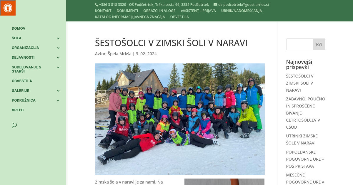 Zimska šola v naravi je za nami. Na smučišču Trije Kralji je od 29. 1. 2024 do 2. 2. 2024 bivalo 34 otrok 6. a in b razreda in 6 učiteljev. V kratkem filmčku vam predstavljamo, kaj vse smo počeli. Poglejte!