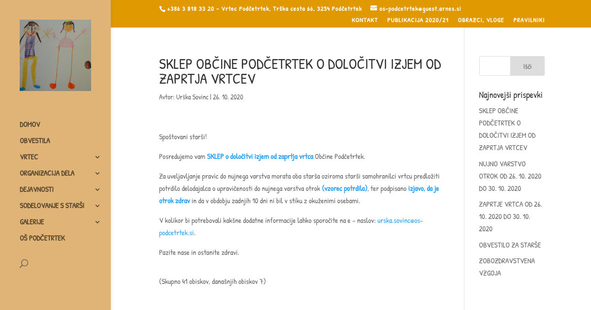 SKLEP OBČINE PODČETRTEK O DOLOČITVI IZJEM OD ZAPRTJA VRTCEV
