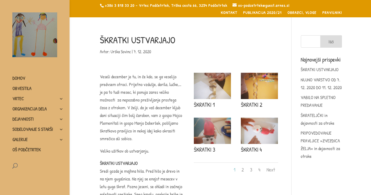 Veseli december je tu, in če kdo, se ga veselijo predvsem otroci. Prijetno vzdušje, darila, lučke,… je pa to tudi mesec, ki ponuja zares veliko možnosti za nepozabno preživljanje prostega časa z otrokom. V želji, da je vaš december kljub dani situaciji čim bolj čaroben, vam z gospo Mojco Plemenitaš in gospo Manjo Doberšek, pošiljamo škratkovo pravljico in nekaj idej kako okrasiti smrečico ali sobico.