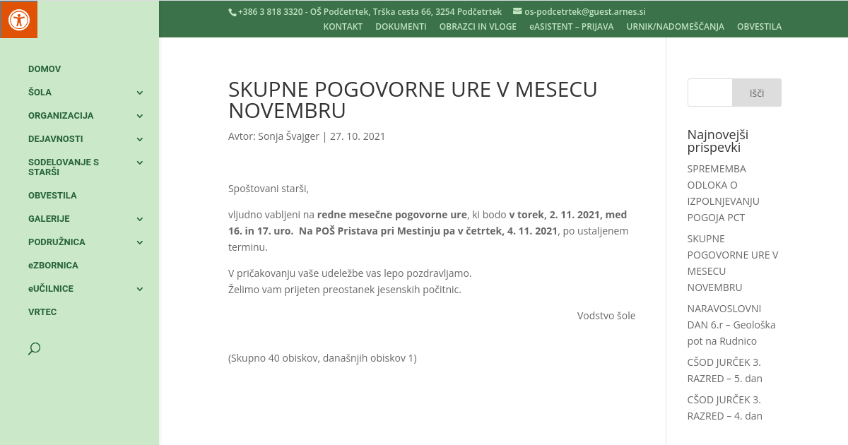 SKUPNE POGOVORNE URE V MESECU NOVEMBRU